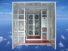 2926KVA 發電機組測試系統可完成發電機組的帶載能力及輸出功率檢測,降低發電機組的檢測工作強度,保障設備安全可靠運行,是船舶行業必備的關鍵性設備。它克服了水電阻測試系統不能準確控制其阻值大小,水易沸騰、易結垢;不能進行突加載/突減載試驗,不易控制等多種缺點。是水電阻的升級換代產品,本產品安全性高、維護成本低。專用集裝箱式設計,具有遮陽、防雨、防盜功能,適合戶外使用,噪音小、過載能力強,多項指標優于進口產品。 行業案例